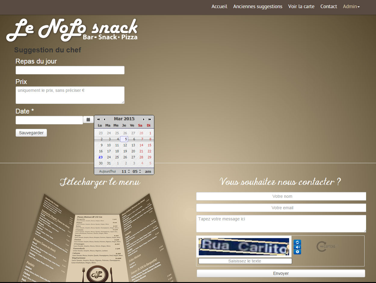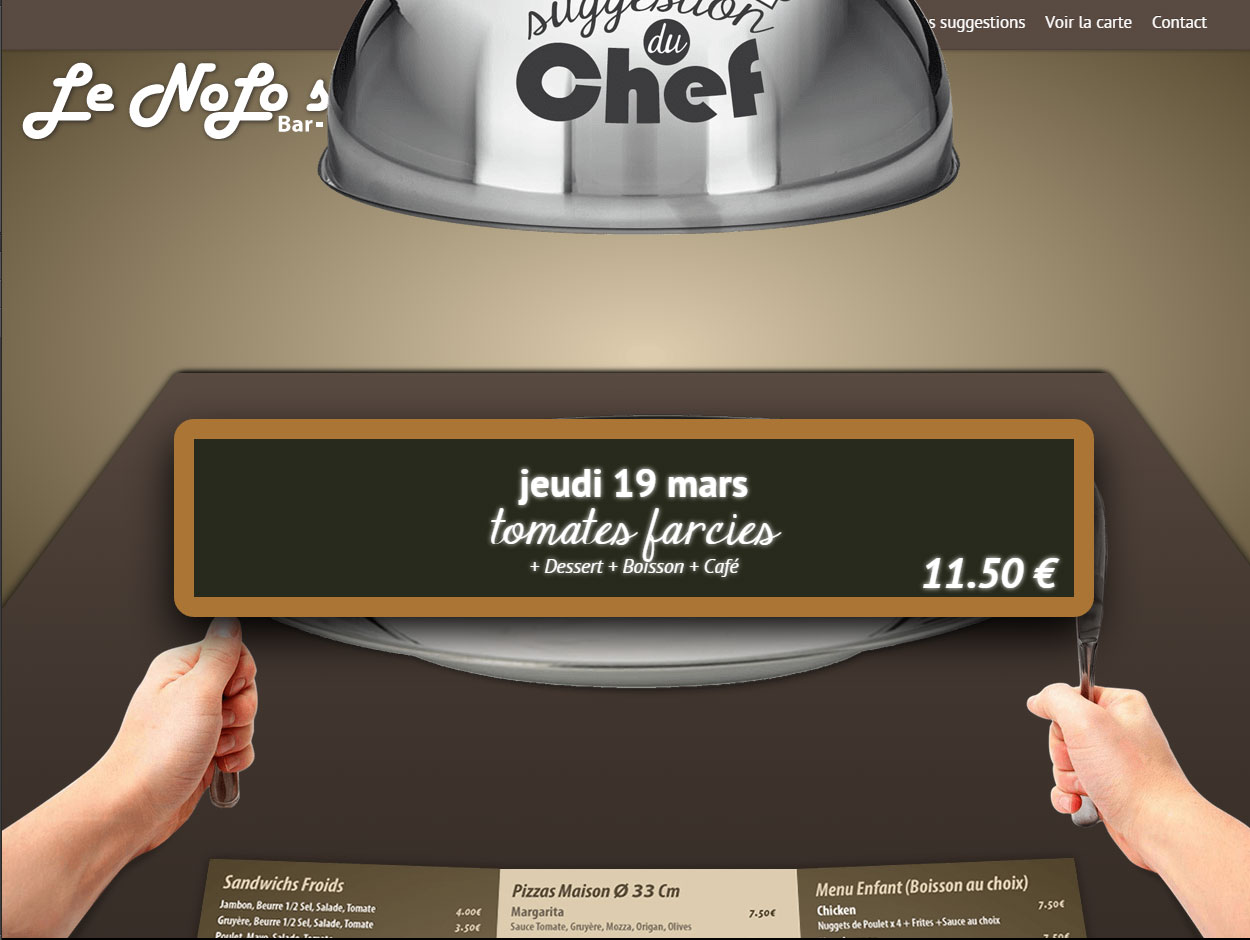 C'est autour de cette atout que nous avons pensé le site: un formulaire simple permet de saisir le plat du jour et son prix très rapidement, ce plat du jour est ensuite caché sous la cloche en page d'accueil.