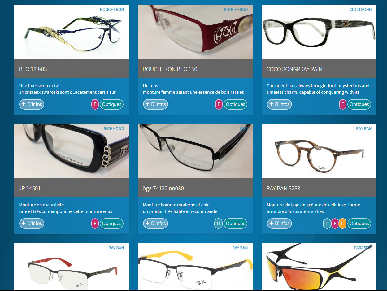 - interconnecté avec Facebook: à chaque nouvelle création de fiche lunettes, une publication est automatiquement créee sur la page Facebook de l'Entreprise
