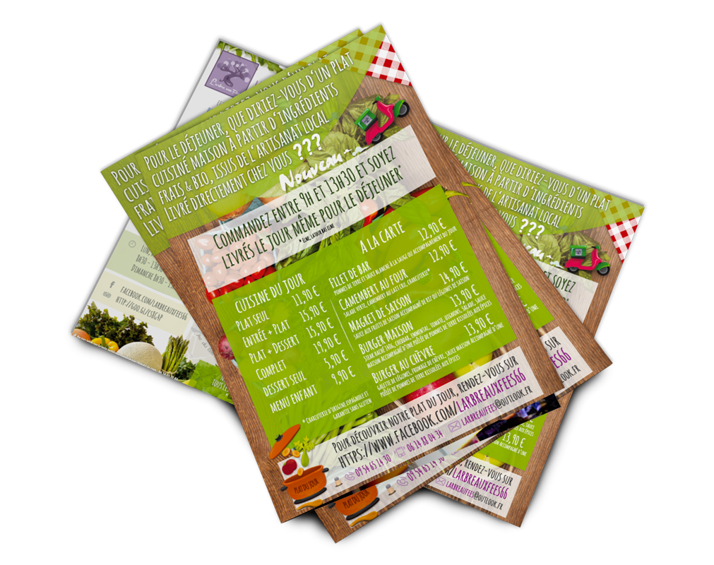 Nous avons réalisé 2 flyers recto / verso pour le restaurant l'Arbre aux Fées.