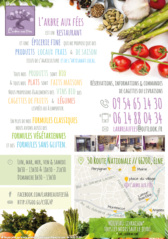 L'Arbre aux Fées est un restaurant 100% à base de cuisines et produits faits maison, avec des produits frais et locaux, des produits artisanaux.